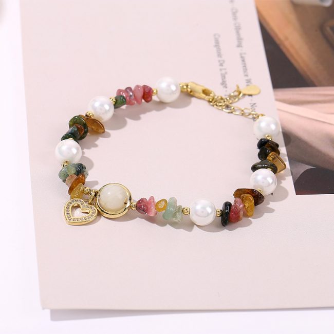 Fresh and simple adjustable sun stone bracelet Product name Autumn new simple flesh colored bracelet Size/weight 210*14 mm (±2 cm) Material Strawberry crystal sun stone powder crystal Packing 1 pr/opp bag Deliver time 3-7days with stock by express Moq 10pcs Payment term T/T, Paypal, Western union,and so on. Delicate modellings is interesting, inlaid shining zircons…